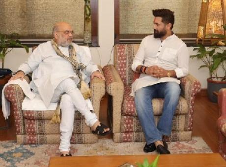 NEW DELHI [Maha Media]: Chirag Paswan-led Lok Janshakti Party (Ram Vilas) on Saturday met Union Home Minister Amit Shah in Patna to discuss the National Democratic Alliance's (NDA) preparations and strategy for the upcoming 243-seat Bihar Assembly elections