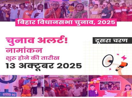 NEW DELHI [Maha Media]: The Election Commission notification today is for the second phase of the Assembly elections in Bihar. With this, the nomination process has begun for 122 assembly constituencies across 20 districts. The last date for filing nominations for the second phase is 20th October. Scrutiny of nomination papers will take place on 21st October, and the last date for withdrawal of nominations is 23rd October. Voting for this phase will be held on 11th November. Nominations can be filed between 11 AM and 3 PM.