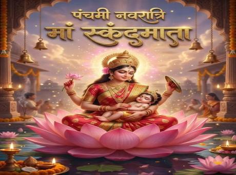 Navratri, meaning “nine nights,” is dedicated to the worship of Goddess Durga and her nine forms, collectively known as Navdurga. The fifth day honours Skandamata, revered as the mother of Kartikeya, and symbolises motherhood, compassion, and the power to guide devotees toward spiritual and material well-being.
