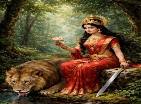 Goddess Katyayani, a fierce aspect of Mahadevi, is revered as the slayer of the demon Mahishasura. She is the sixth among the Navadurgas, the nine forms of Goddess Durga worshipped during Navratri.