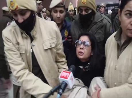 As this happened, the Delhi police detained Derek O'Brien, Mahua Moitra, and others, lifting them up and dragging them to the police van.