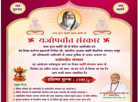BHOPAL [Maha Media]: The Maharshi Mahesh Yogi Sansthan is set to organize the Upanayan Sanskar, also known as the sacred thread ceremony or Vratabandha, on April 20, 2026. This significant event will take place at the Maharshi Mangalam Bhawan within the Maharshi Vidya Mandir campus in Ratanpur, Bhopal. Held under the distinguished presence of Ved Vidya Martand Brahmachari Girish Ji, the head of the institute, the ceremony is scheduled to run from 10:30 AM to 2:30 PM. The ritual carries deep spiritual and scientific weight in Hindu tradition, marking the transition of a young boy into a life of discipline and Vedic learning. The Yagyopavita thread itself consists of three strands that symbolize the fundamental debts a person owes to the divine, their ancestors, and the sages. Beyond its religious roots, the practice of wrapping the thread around the ear is recognized for its potential to stimulate specific nerves that aid in memory and concentration. This transition is historically regarded as the official start of the Brahmacharya Ashram, fostering qualities of self-control, purity, and responsibility to help mold children into cultured citizens. Families interested in enrolling their children for this Vedic initiation can do so by contributing a Dakshina fee of Rs 1,100. The Sansthan’s Vedic pundits will conduct the rites according to traditional laws on this auspicious day, leading up to Akshaya Tritiya. For registration and further details, the institute has provided contact numbers 9425008470 and 989370046 for public inquiries. This ceremony not only represents a significant cultural tradition but also aligns with the Sansthan's mission to enhance spiritual growth and contribute to global peace through practices like Transcendental Meditation.