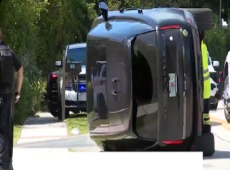 Woods had been overtaking a work truck pulling a trailer at high speed when he clipped the back of it, causing his vehicle to roll onto its driver’s side, Sheriff John Budensiek told a press conference.