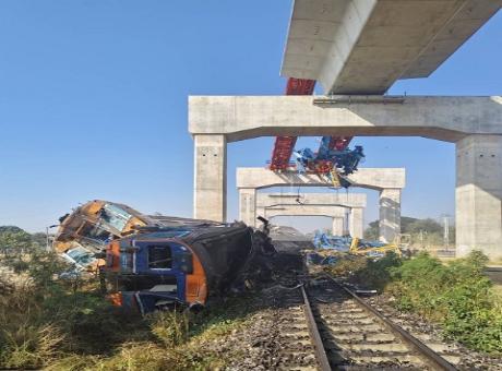 NEW DELHI [Maha Media]: A train derailed in northeastern Thailand on Wednesday after a construction crane fell on three of its carriages, killing at least 19 people and injuring about 80, police said.