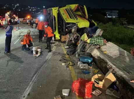 NEW DELHI [Maha Media]: A passenger bus crash killed at least 16 people on Indonesia’s main island of Java just after midnight Monday, officials said. The bus carrying 34 people lost control on a toll road and struck a concrete barrier before rolling onto its side, said Budiono, a search and rescue agency chief who goes by single name like many Indonesians.