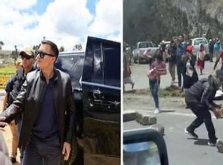 मुंबई [महामीडिया]इक्वाडोर के राष्ट्रपति डेनियल नोबोआ पर जानलेवा हमला हुआ है। दरअसल करीब 500 प्रदर्शनकारियों ने राष्ट्रपति नोबोआ के काफिले पर हमला किया और पत्थर मारे। गनीमत रही कि इस हमले में राष्ट्रपति नोबोआ को चोट नहीं पहुंची औरवह सुरक्षित हैं। राष्ट्रपति पर हमले की रिपोर्ट दर्ज की गई है। फिलहाल पुलिस ने पांच आरोपियों को हिरासत में लिया है।