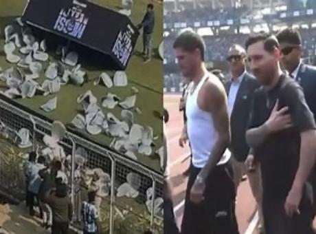 कोलकाता [महामीडिया] कोलकाता के साल्टलेक स्टेडियम में आज शनिवार दोपहर अर्जेंटीना के दिग्गज फुटबॉलर लियोन मेसी के सम्मान समारोह के दौरान भारी हंगामा हुआ। हंगामे के लिए जिम्मेदार दिग्गज फुटबॉलर लियोन मेसी के कोलकाता कार्यक्रम व्यवस्थापक सतद्रु दत्ता को हिरासत में लिया गया है। सतद्रु दत्ता के विरुद्ध एफआईआर भी दर्ज की गई है। कोलकाता के साल्टलेक स्टेडियम में हुए हंगामा और अव्यवस्था के बाद पश्चिम बंगाल की मुख्यमंत्री ममता बनर्जी ने लोगों से माफी मांगी है। उन्होंने कहा कि आज मैं इस बुरी घटना के लिए लियोनेल मेसी के साथ-साथ सभी खेल प्रेमियों और उनके फैंन्स से दिल से माफी मांगती हूं।