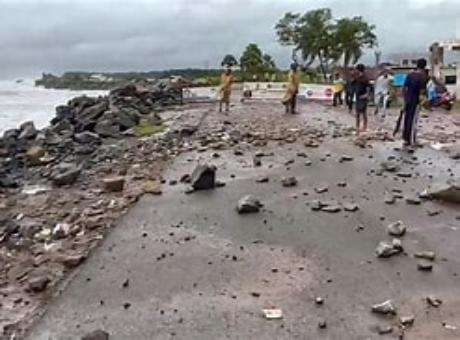 तूफान मोन्था के कारण समुद्र में ऊंची लहरें