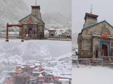 केदारनाथ और बद्रीनाथ धाम सफेद बर्फ की चादर से ढके