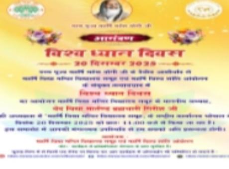 भोपाल [महामीडिया]महर्षि महेश योगी संस्थान में आज 20 दिसंबर को विश्व ध्यान दिवस मनाया जाएगा।इस अवसर पर महर्षि विद्या मंदिर विद्यालय समूह के अध्यक्ष ब्रह्मचारी गिरीश जी एवं शैक्षणिक संस्था के शिक्षक शिक्षिकाएं और छात्र-छात्राएं उपस्थित रहेंगे । विश्व ध्यान दिवस का आयोजन महर्षि विद्या मंदिर विद्यालय समूह एवं महर्षि विश्व शांति आंदोलन के संयुक्त तत्वाधान में किया जा रहा है। इस कार्यक्रम का शुभारंभ महर्षि विद्या मंदिर विद्यालय समूह के राष्ट्रीय कार्यालय,लांबाखेड़ा,भोपाल में आज 20 दिसंबर को प्रातः 11 बजे होगा। विश्व ध्यान दिवस का यह कार्यक्रम रामराज टीवी के वेबसाइट,यूट्यूब एवं फेसबुक चैनलों पर भी प्रसारित किया जाएगा । ध्यान रहे की ध्यान दिवस 21 दिसंबर को मनाया जाता है लेकिन उस दिन रविवार होने के कारण महर्षि संस्थान में आज शनिवार को ही मनाया जा रहा है।