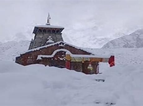 केदारनाथ धाम बर्फबारी की सफेद चादर से ढका